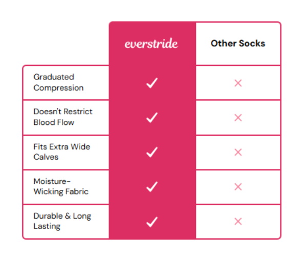 Everstride compression socks use a 15-20mmHg graduated compression to combat swelling.